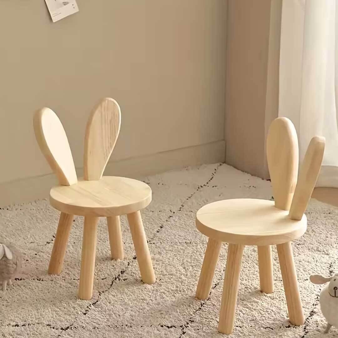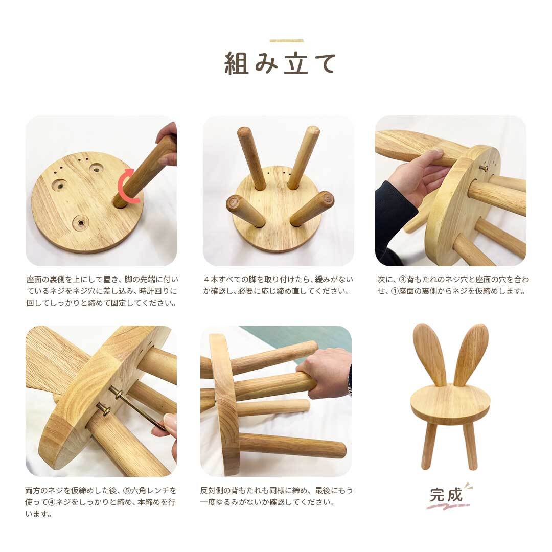 ふんわり可愛いウサギモチーフ!木製無垢材キッズチェアです