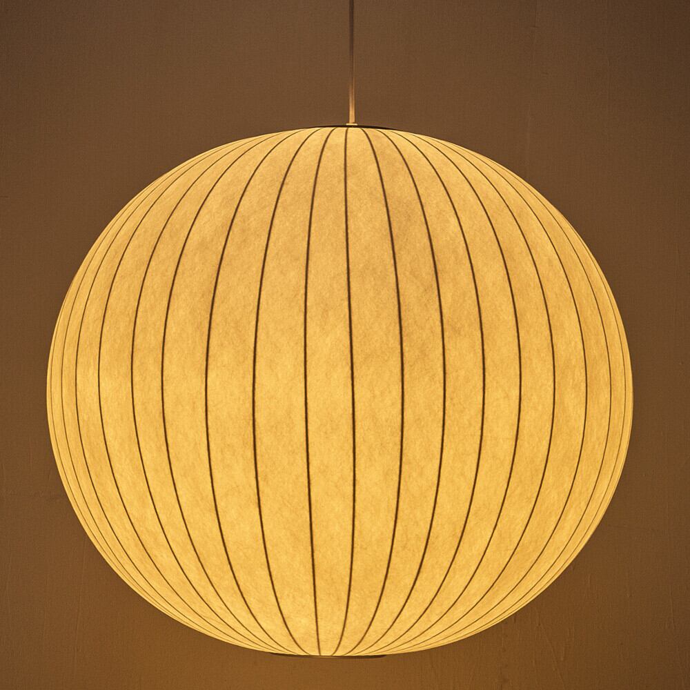 1947年にジョージネルソンによってデザインされたバブルランプ(Ball Lamp)。シンプルなデザインは50年以上たった現在も、幻想的な美しさは愛好者が後を絶ちません。バルブランプは、ニューヨーク近代美術館のパーマネントコレクションとして収蔵されているほどの名作の照明です。ランプから照らされる灯りは空間を幻想的に演出し、シンプルなフォルムから描かれる灯りの美しさがモダンインテリアのお部屋の雰囲気を演出します。(※電球は付属しておりません。)